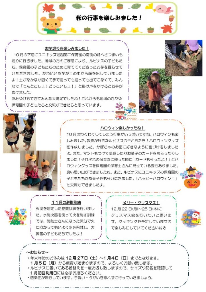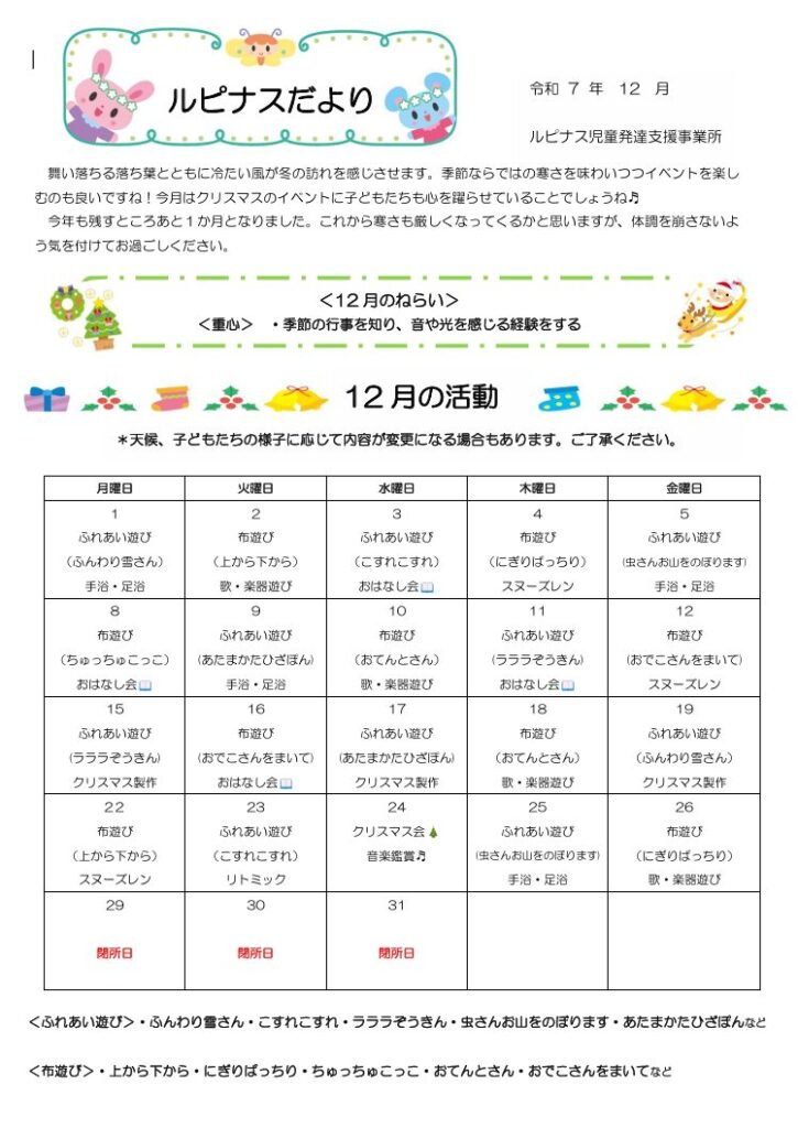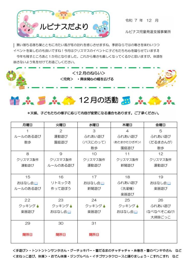 お知らせ 11月のプログラム 2025-11-05 universe.2024 https://lupinus.universe111.net/wp-content/uploads/2023/08/LUPINUSLOGO.png ルピナス児童発達支援事業所